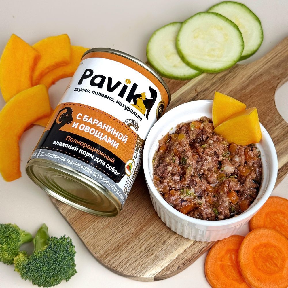 Влажные рационы Pavik соответствуют природным пищевым потребностям собак. Они не содержат вредной «химии», пшеницы, кукурузы, сои и других нежелательных ингредиентов. Для правильного переваривания пищи мы позаботились об оптимальной консистенции еды для собак. Это небольшие кусочки мяса, субпродуктов, овощей, которые точно понравятся даже привередливому животному.