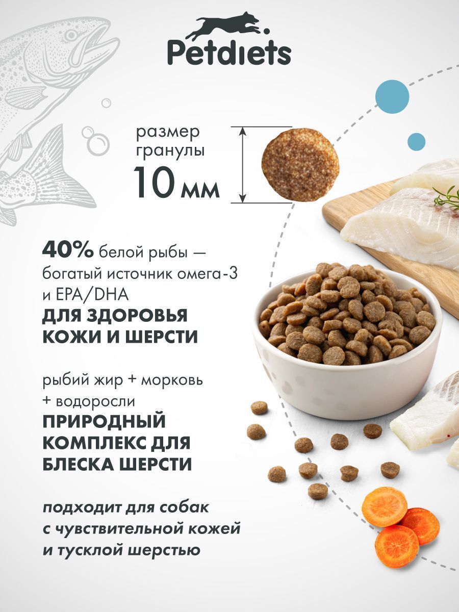 Выбирая petdiets с белой рыбой как еду для своего любимца, вы делаете ставку на качество питания без компромиссов. Такой рацион станет основой здорового образа жизни вашей собаки мелкой породы на каждый день. Возможность купить такой корм онлайн упрощает процесс ухода за животным.
