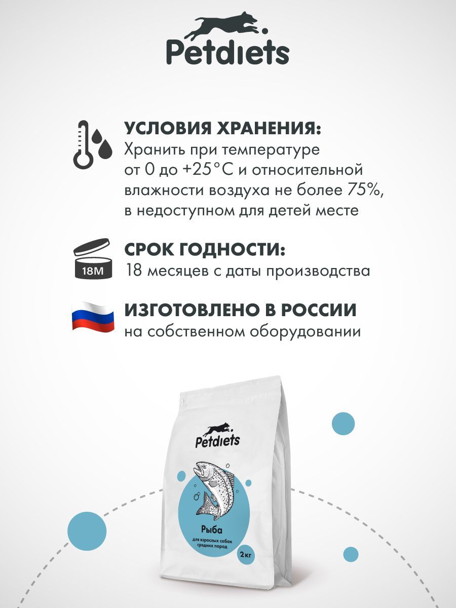 Рацион «PETDIETS» с Белой Рыбой поможет собакам правильно расти и развиваться, бороться со стрессом и болезнями и поможет обеспечить здоровую старость и долгую жизнь. Независимо от того, живет Ваша собака активной жизнью, или проводит большую часть дня на хозяйском кресле и рядом с владельцем, формулы кормов «PETDIETS» будут поддерживать Вашего питомца в идеальной форме.