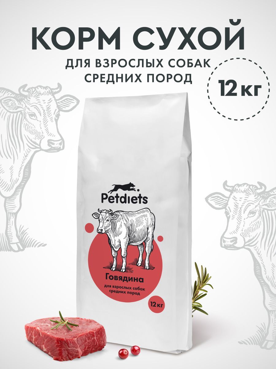 Сухой корм Petdiets (Петдаетс) с говядиной для взрослых собак средних пород — энергия, выносливость и здоровье вашего питомца на каждый день.