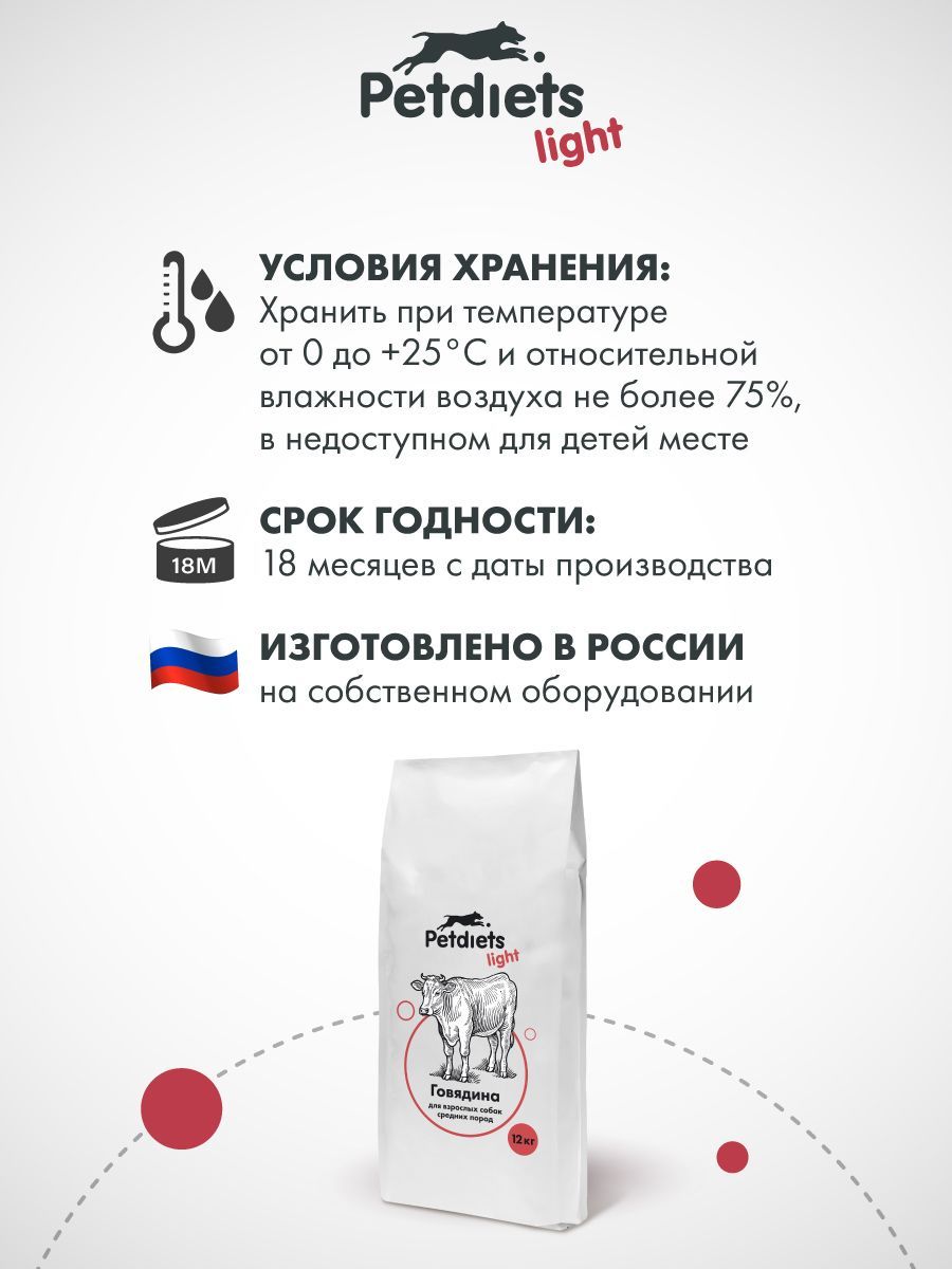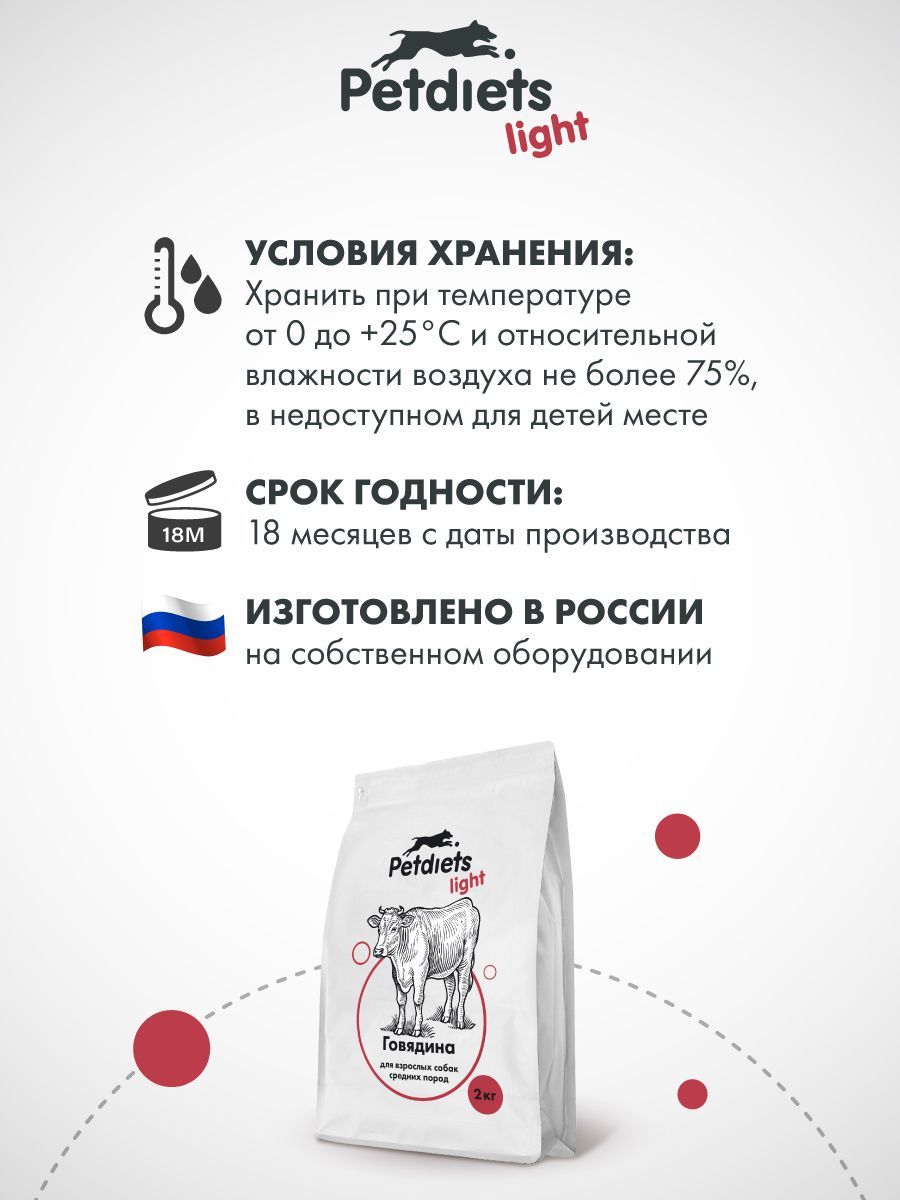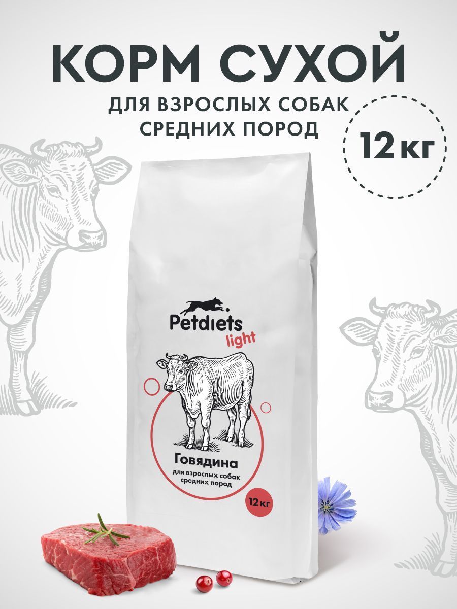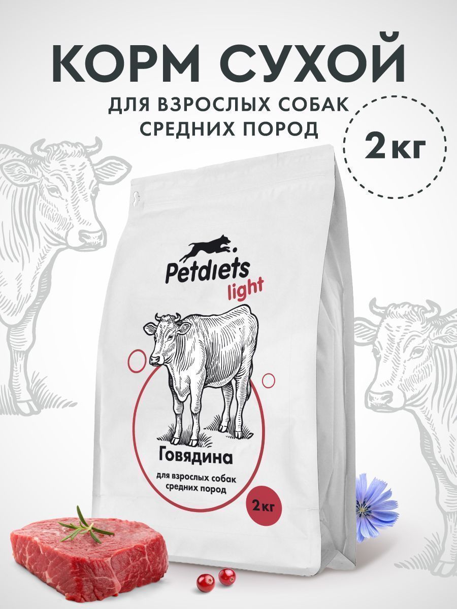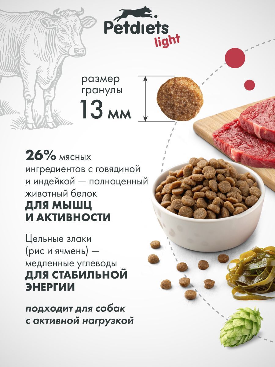 Корм сухой "Petdiets Light" для собак средних пород. Говядина